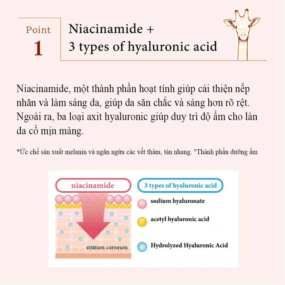 - Hỗ trợ dưỡng trắng và đều màu da, giảm thâm sạm vùng cổ hiệu quả.