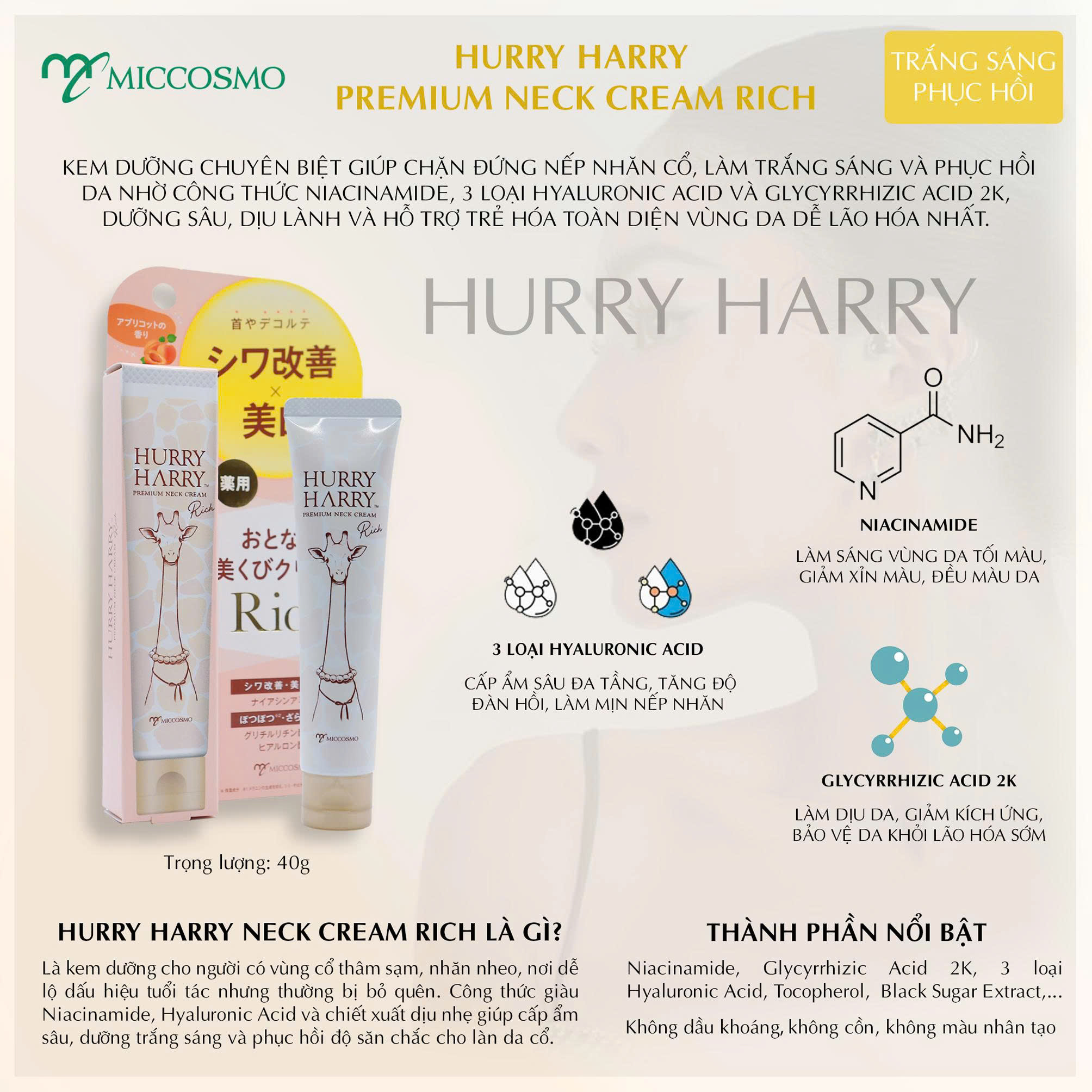 MICCOSMO HURRY HARRY PREMIUM NECK CREAM RICH 40gr - KEM DƯỠNG HỖ TRỢ MỜ NHĂN CỔ