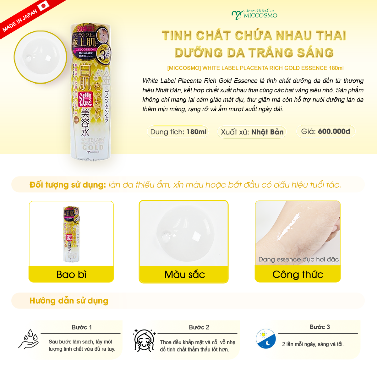 Công dụng sản phẩm Miccosmo White Label Placenta Rich Gold Essence