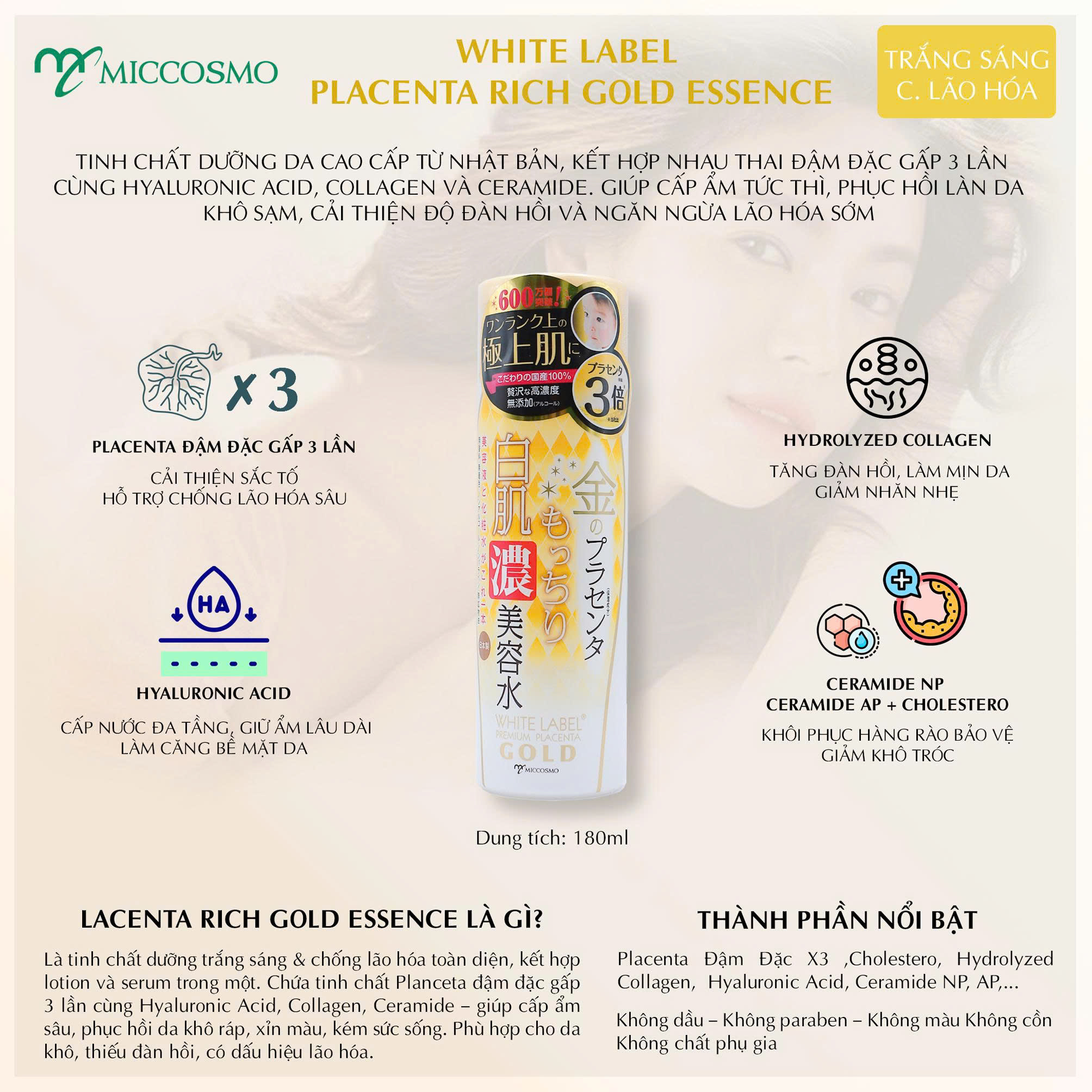 MICCOSMO WHITE LABEL PLACENTA RICH GOLD ESSENCE 180ml - TINH CHẤT HỖ TRỢ DƯỠNG SÁNG NGỪA LÃO HÓA