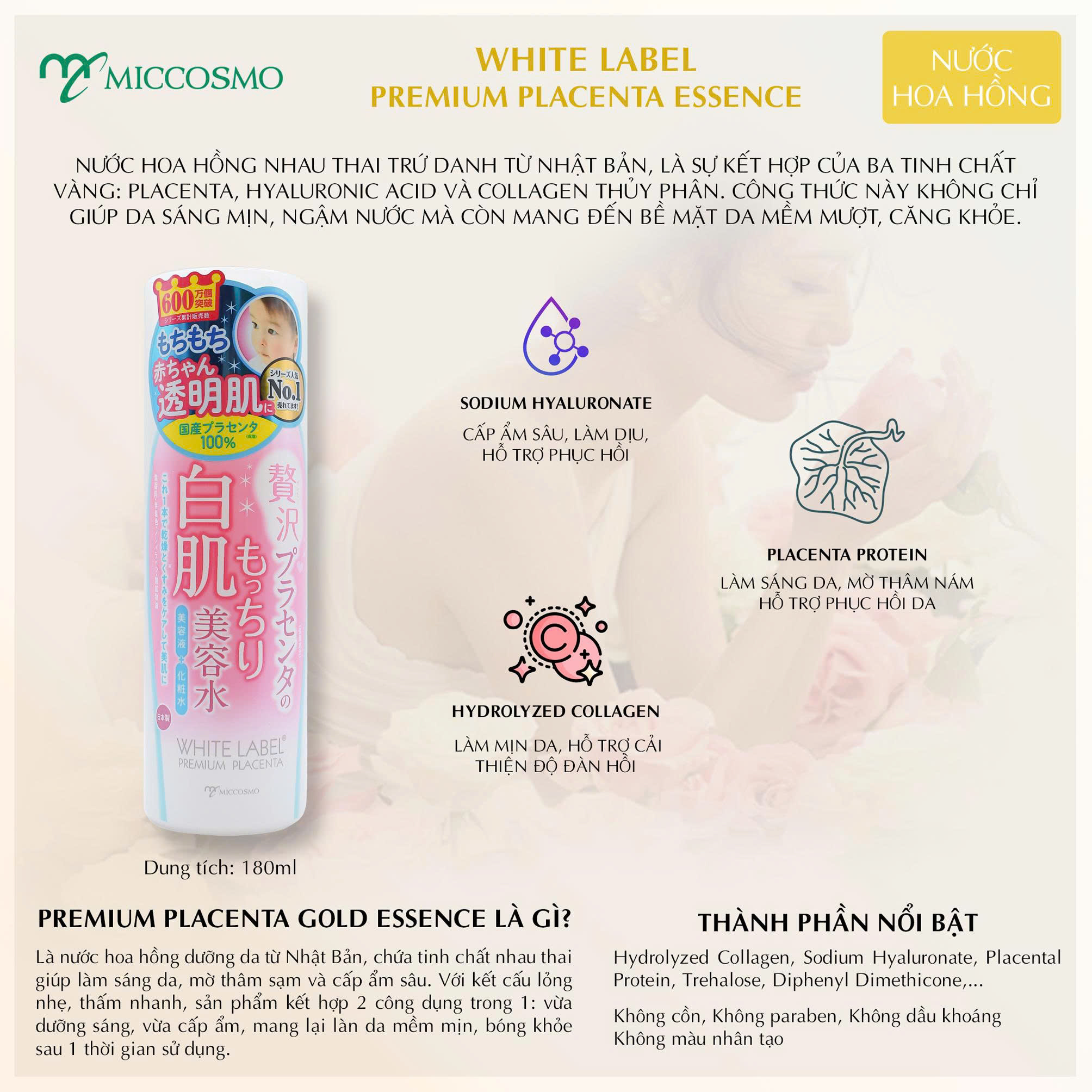 MICCOSMO WHITE LABEL PREMIUM PLACENTA ESSENCE 180ml - NƯỚC HOA HỒNG CẤP ẨM, LÀM DỊU DA